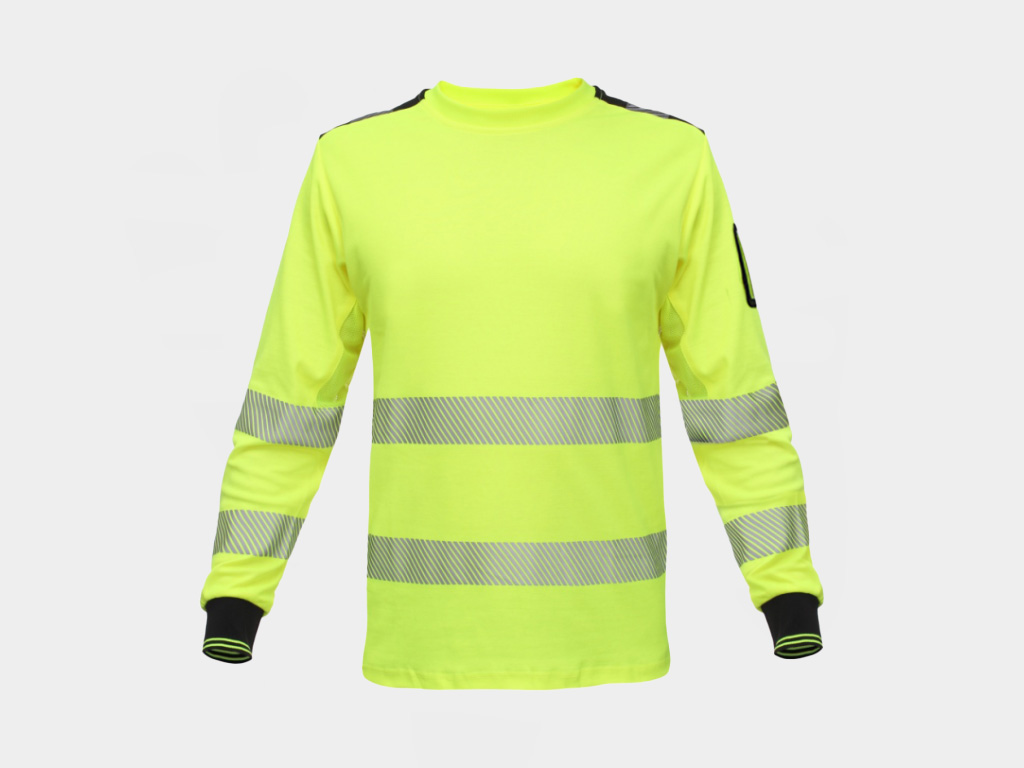 Gulur sýnileika langermabolur með endurskinsröndum frá BoSafety